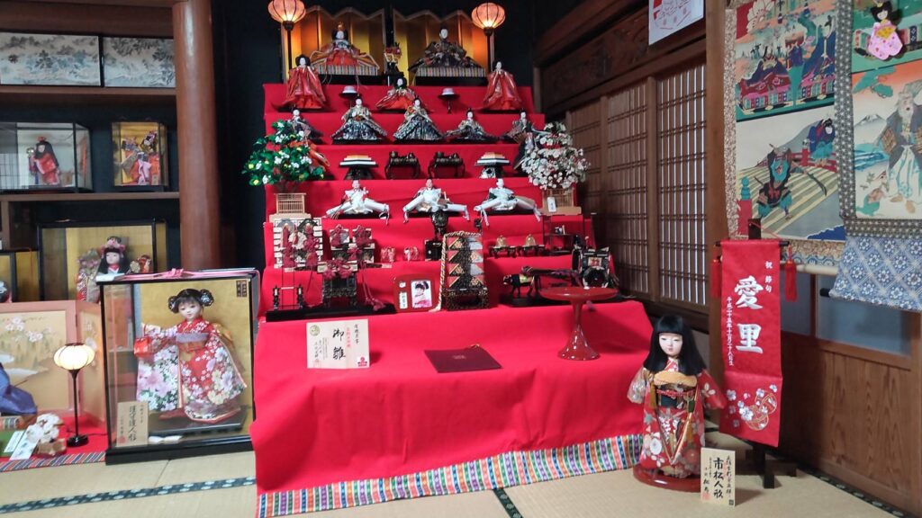 岩野家の歴代女性五人のお雛様を毎年飾っています。
